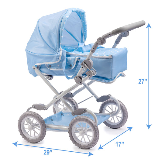 JC Toys Berenguer Boutique Deluxe Foldable Baby Doll Stroller with Canopy Removable Carry Basket Blue Ages 3+
