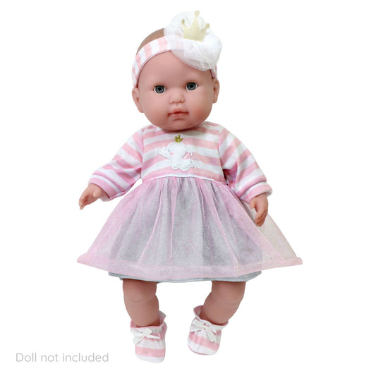 JC Toys Berenguer Boutique Baby Doll Outfit Pink Striped Dress with Tulle Skirt, Shorts, Headband, and Booties