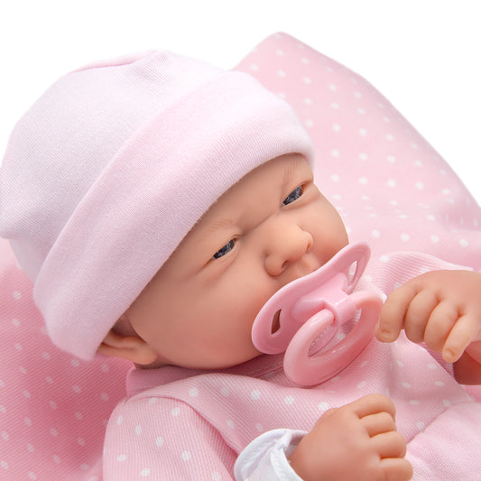 JC Toys, La Newborn Boutique 14 Inch Real Girl Doll-Pink Outfit 9 Pcs Gift Set