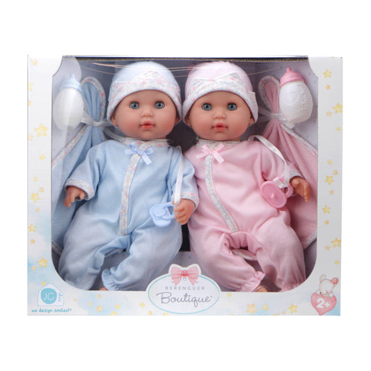 JC Toys, Berenguer Boutique TWINS 15in Soft Body Baby Doll Open/Close Eyes