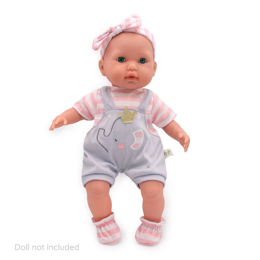 JC Toys Berenguer Boutique Baby Doll Outfit Gray Overall Shorts with Pink Stripes Includes Headband and Booties