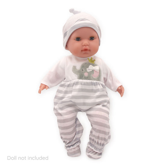 JC Toys Berenguer Boutique Baby Doll Outfit Gray Striped Long Onesie with Hat, and Booties