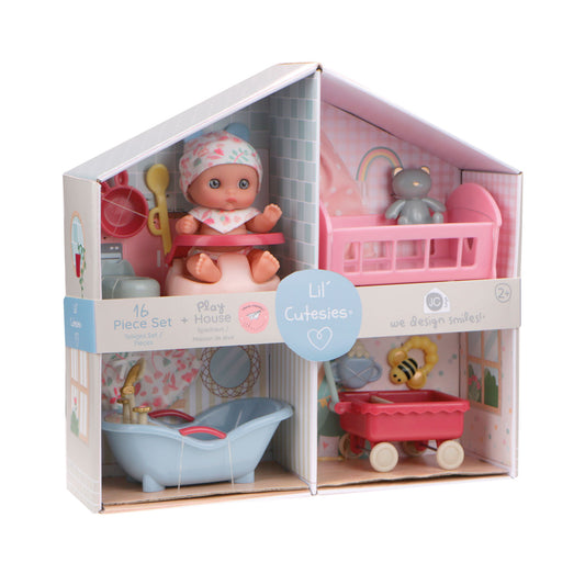 Lil’ Cutesies® 5.5” All Vinyl Baby Doll Playhouse Set – 16 Piece Dollhouse with Furniture & Accessories
